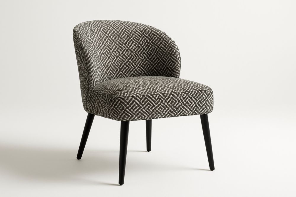 Sedia lounge in tessuto geometrico con gambe in legno nero